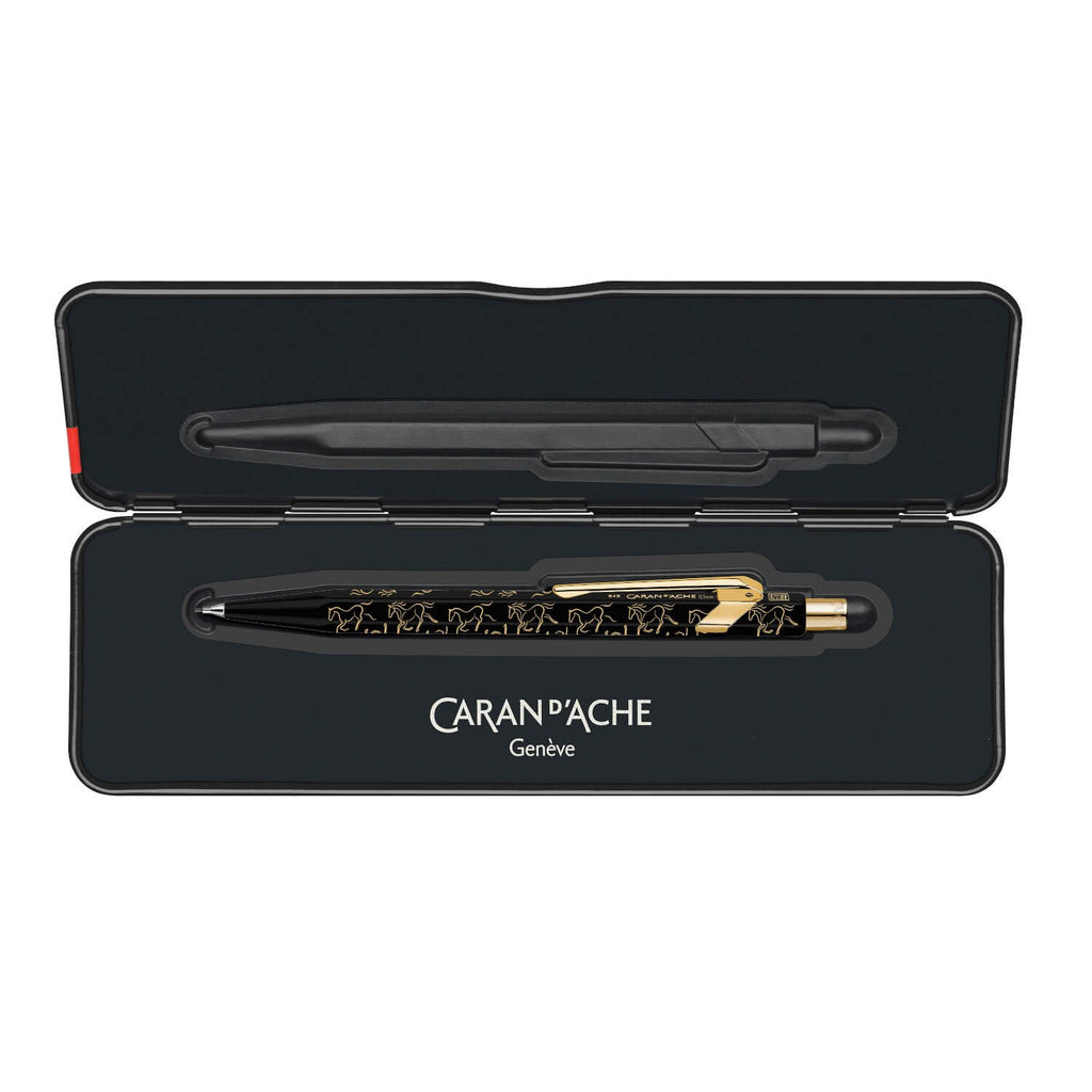 Das Pferd ist das siebte des 12-Jahres-Zyklus von Tieren, die im chinesischen Tierkreis erscheinen, der sich auf den chinesischen Kalender bezieht. Das Pferd hat in der chinesischen Mythologie eine lange Tradition. Die stilisierten Pferde harmonieren perfekt mit den goldenen Attributen (Clip und Knopf) und bilden einen glänzenden Kontrast zum satinierten schwarzen Schaft.