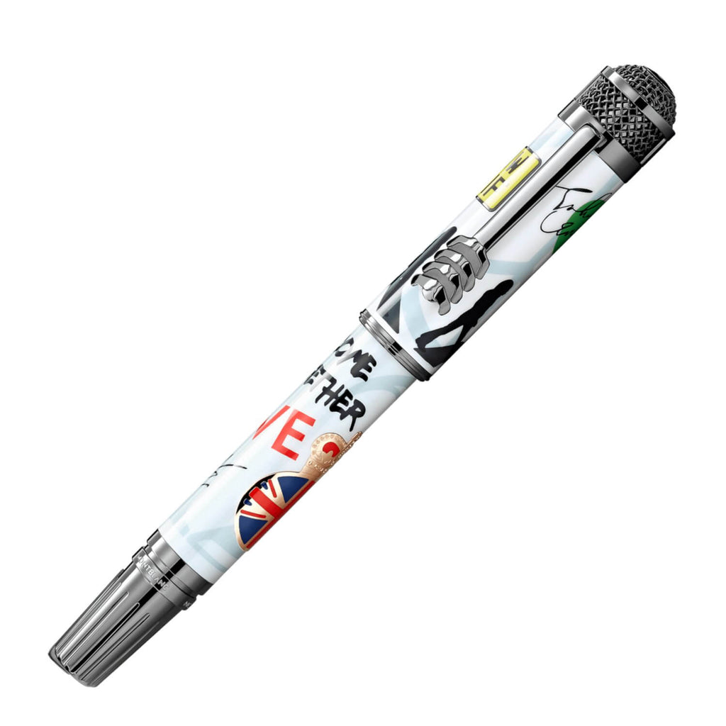 Die Beatles sind eine der berühmtesten Rockbands aller Zeiten. Mit ihren Mitgliedern John Lennon, Paul McCartney, George Harrison und Ringo Starr galten sie weithin als die bedeutendste und einflussreichste Band der Rockära. In den frühen 1960er Jahren zeigte sich ihre enorme Popularität zunächst als „Beatlemania“, doch als die Musik der Gruppe unter der Führung der Hauptsongwriter Lennon und McCartney an Raffinesse gewann, wurden sie als Verkörperung der Ideen der Gegenkultur der 1960er Jahre wahrgenommen. Der Kegel des Füllfederhalters ist vom Knopf des Mischpults in den berühmten Abbey Road Studios inspiriert, während die Kappe dem Mikrofon des Studios nachempfunden ist. Der Clip symbolisiert den ikonischen Schnurrbart der Beatles auf ihrem Porträt. Der Schaft und die Kappe sind lackiert und mit mehreren Metalleinlagen versehen. Schließlich bezieht sich die Limitierung auf 1969 auf das Jahr des legendären Albums „Abbey Road“.