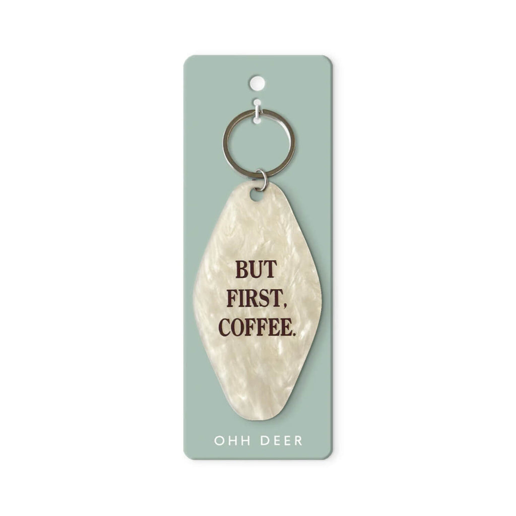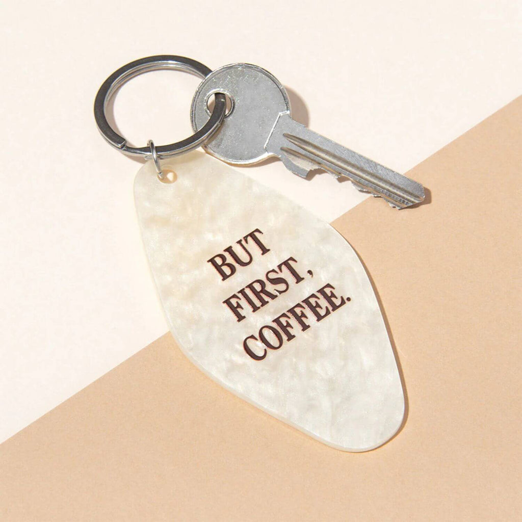 Schlüsselanhänger "BUT FIRST. COFFEE." marmoriert cream