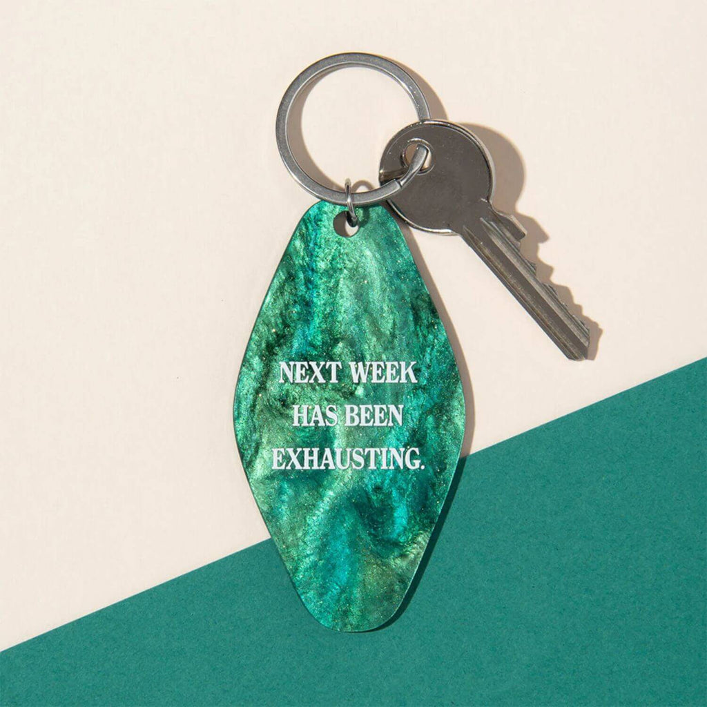 Schlüsselanhänger "NEXT WEEK HAS BEEN EXHAUSTING" marmoriert grün